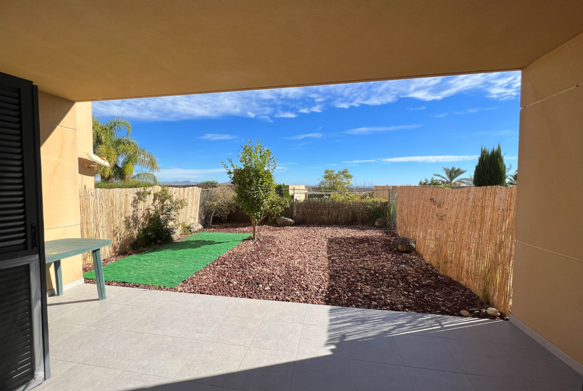 Charming 2 bedroom, 2 bathroom apartment on the ground floor with gardens to the front and rear, covered parking and hot and cold air conditioning. The property is well furnished, all included in the price.The hotel Valle del Este is only 5 minutes walk away, with its fantastic spa and gym, and the shopping center next door, with numerous bars and restaurants, and there is also a small supermarket for the essentials.Valle del Este is 15 minutes from Playa de Vera y Garrucha, 20 minutes from Mojácar and has quick and direct access to the Mediterranean motorway AP-7 exit 529.