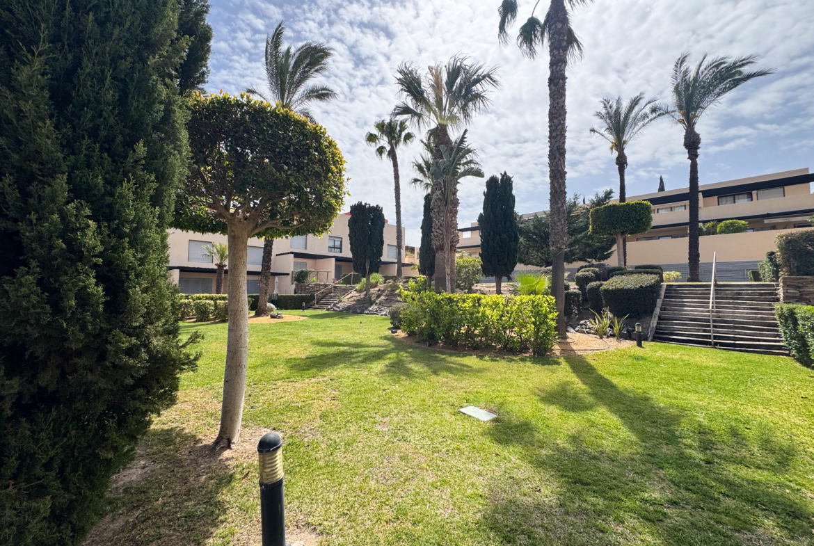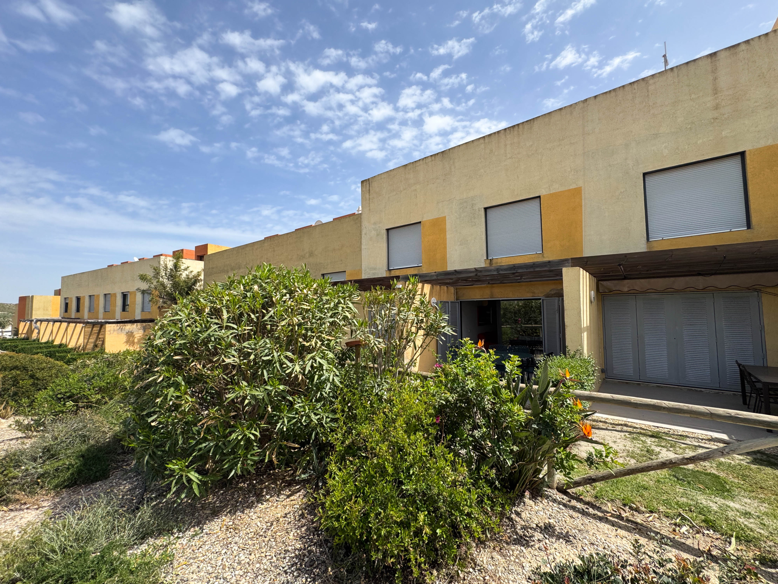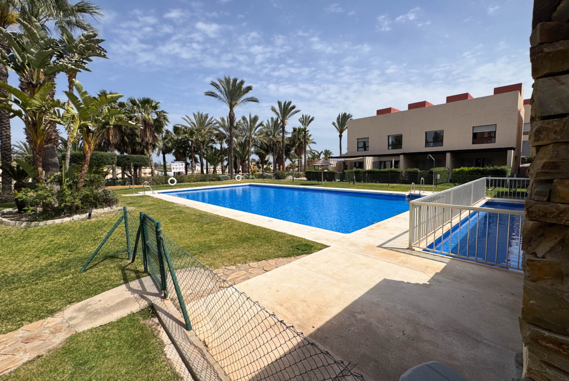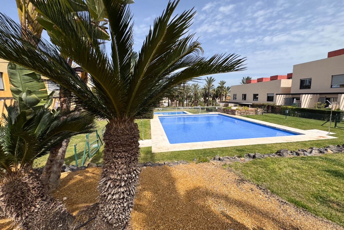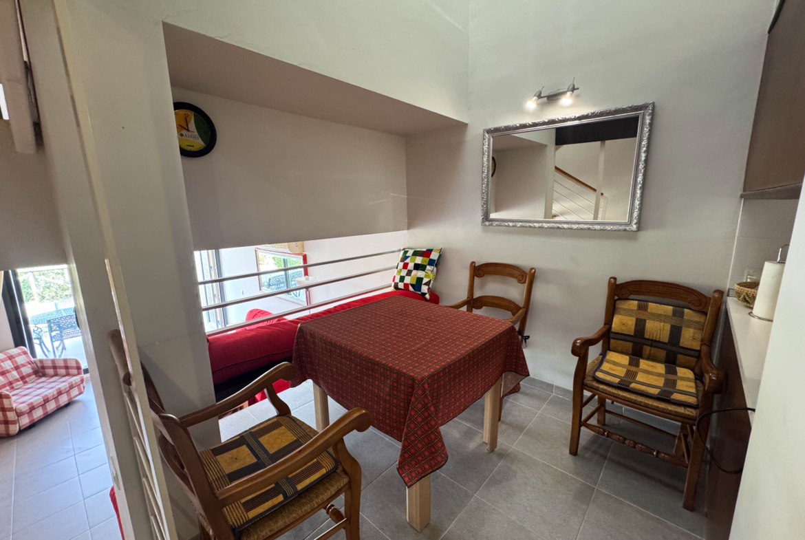 The second floor houses the two bedrooms and a bathroom with a walk-in shower, offering privacy and comfort. Furthermore, the 14-square-meter solarium at the top is the perfect spot for sunbathing or enjoying the starry nights. The community-maintained garden adds a touch of greenery and freshness to the surroundings.