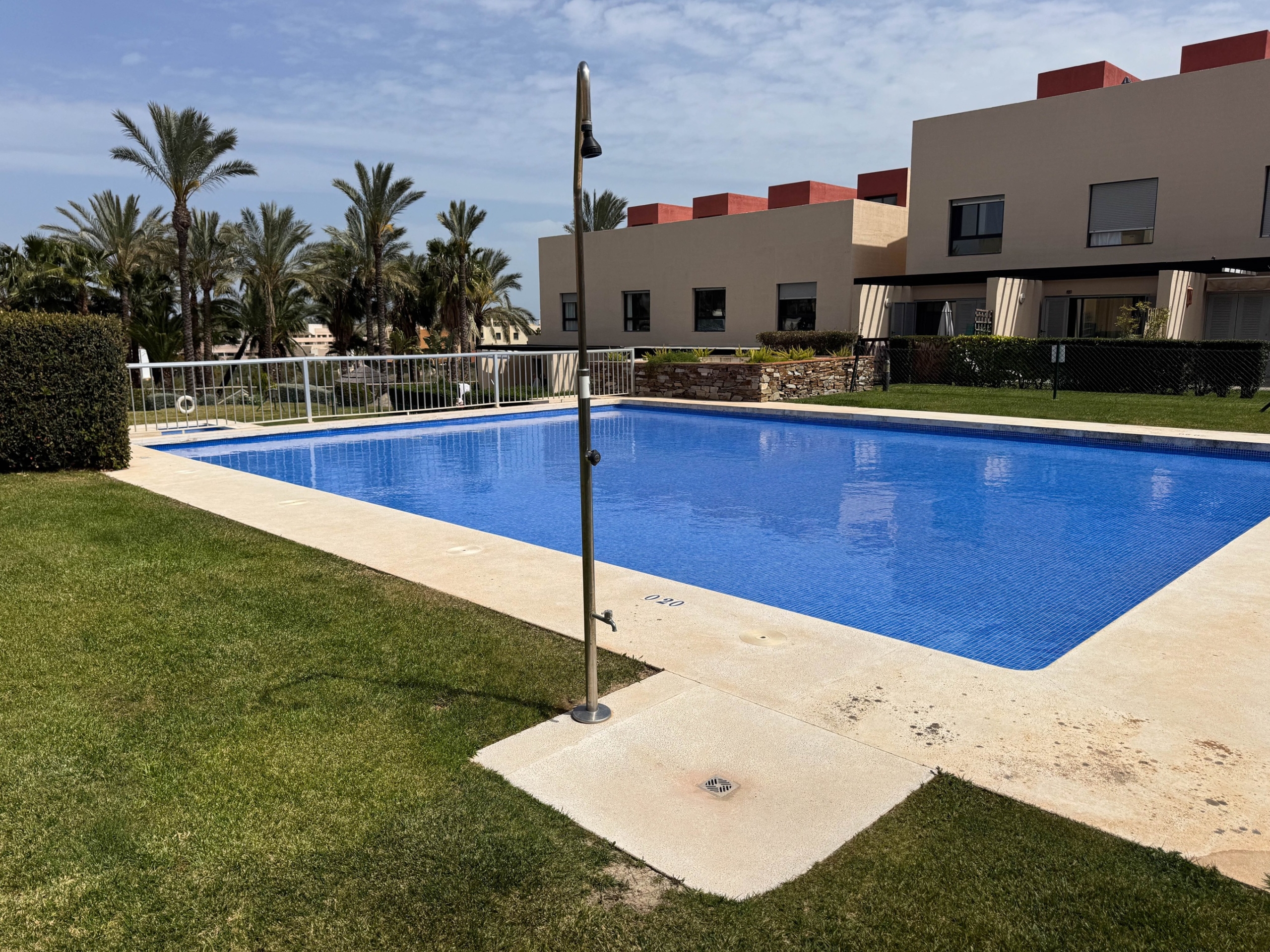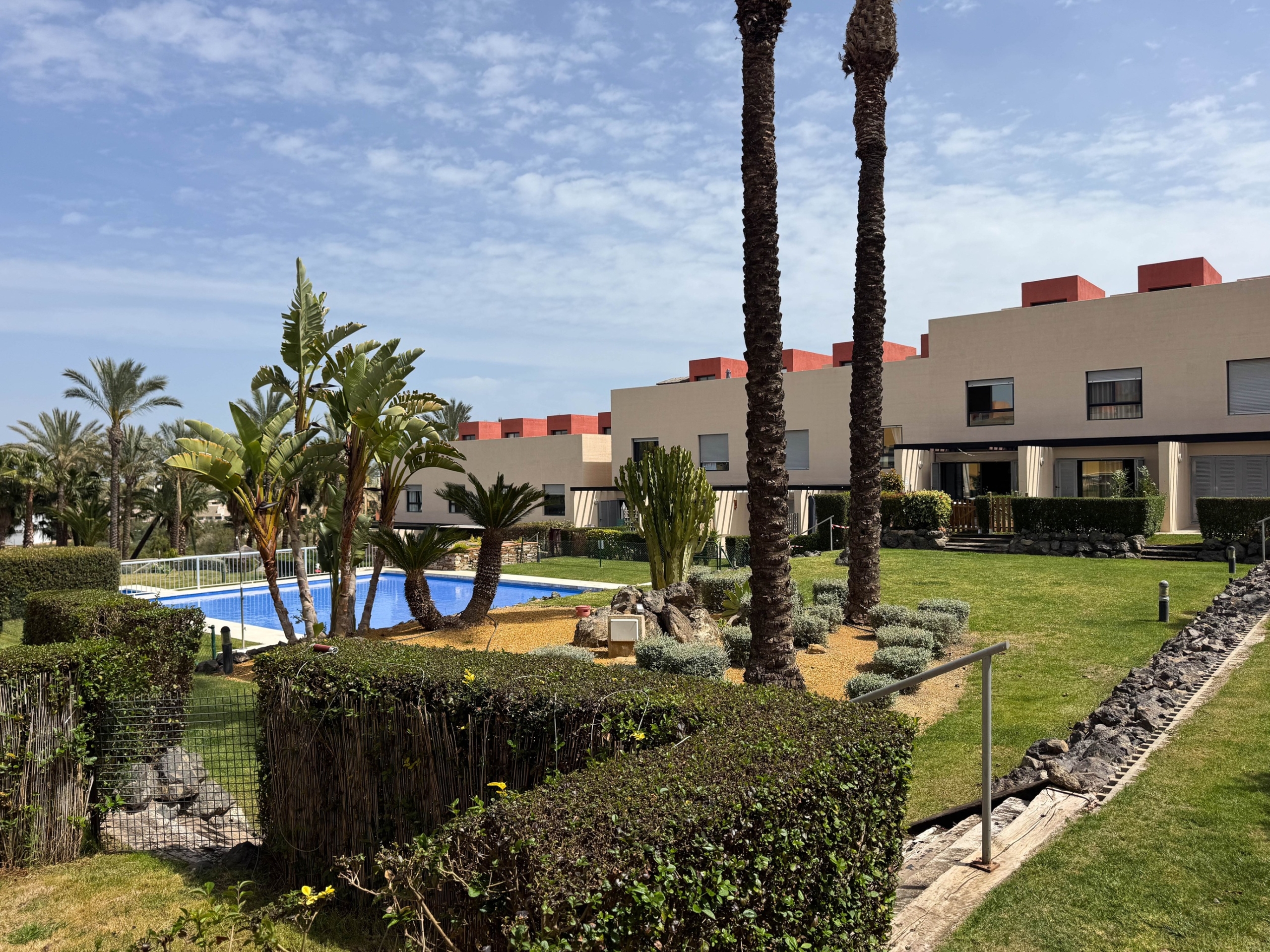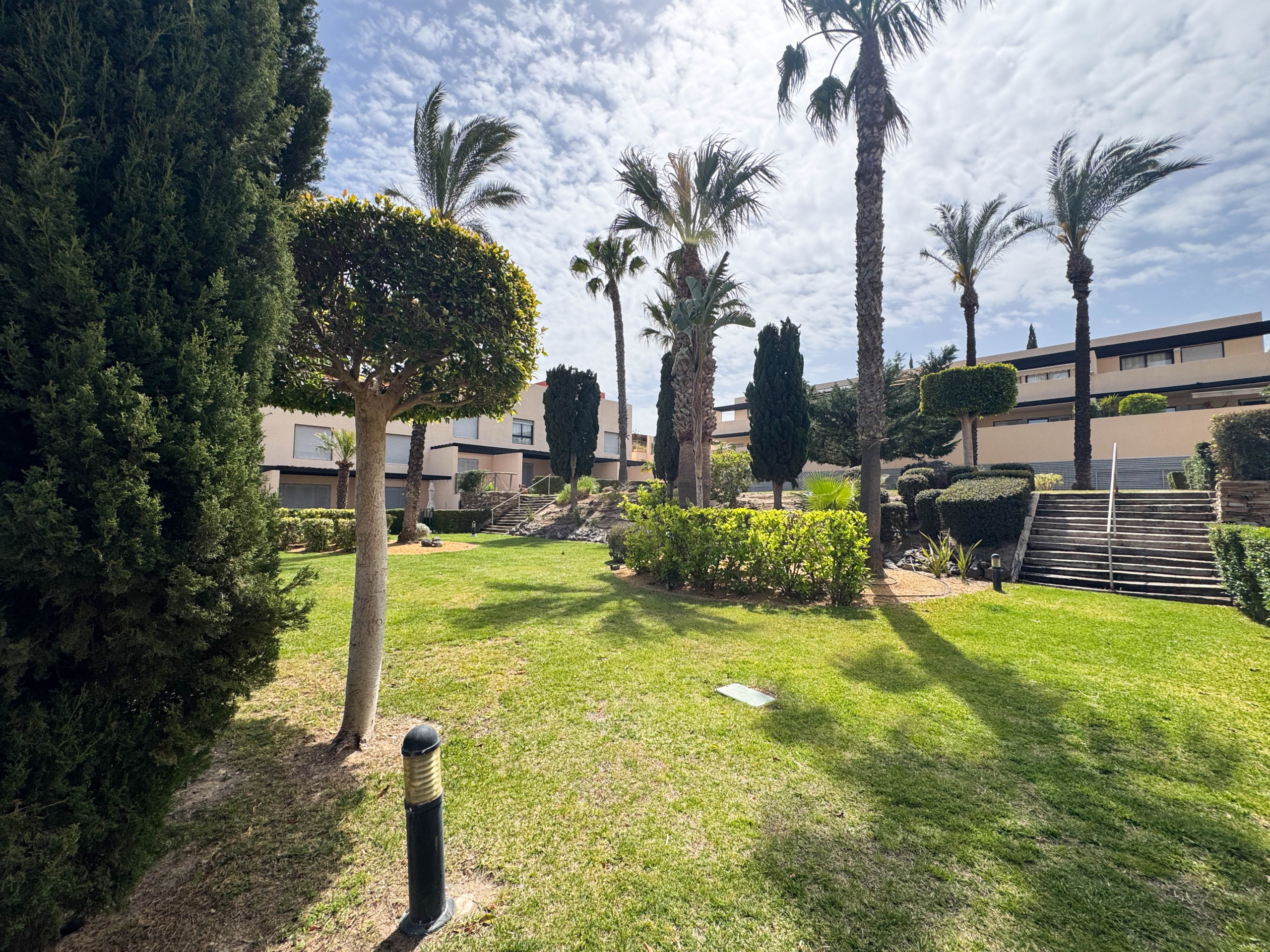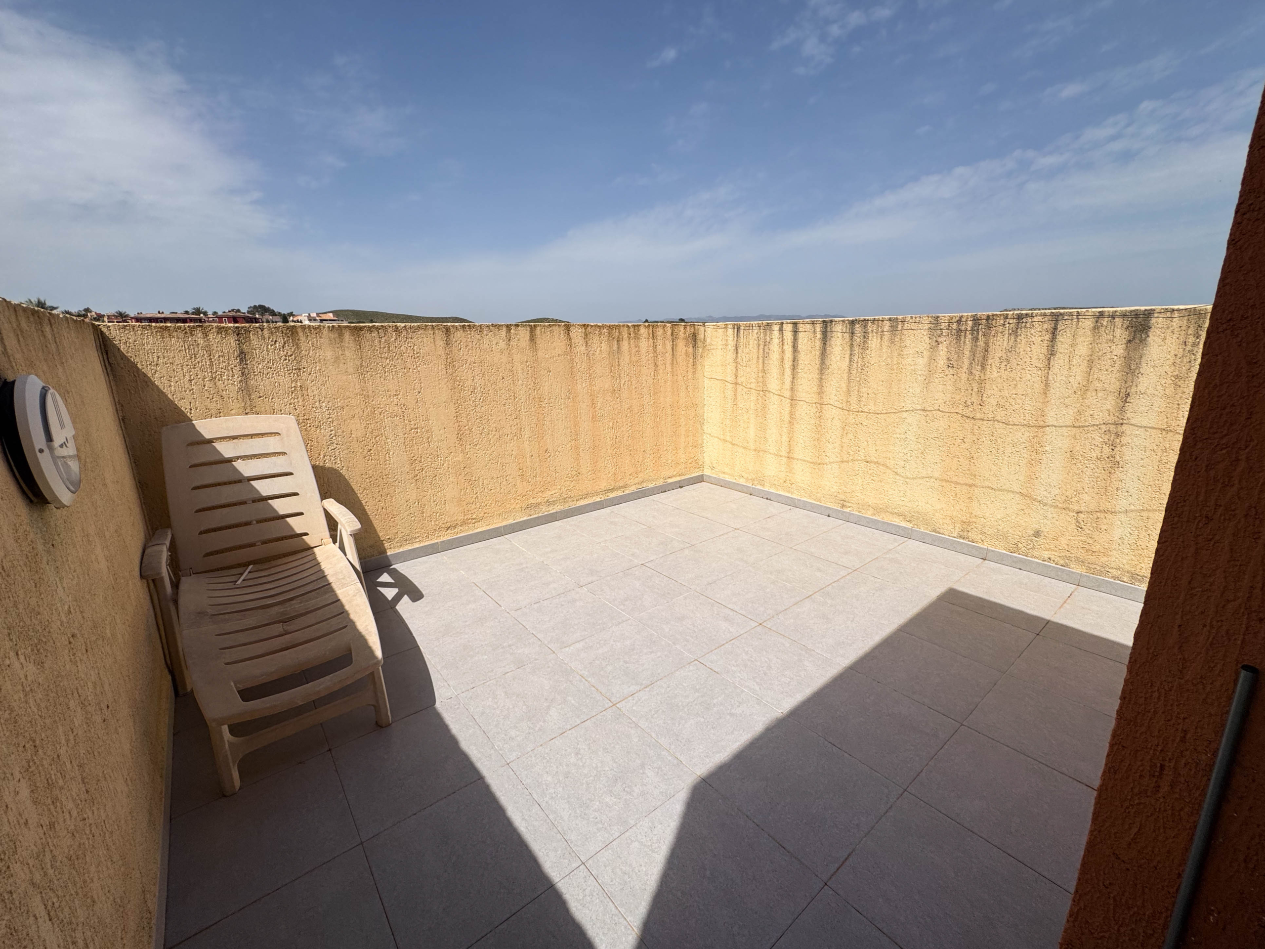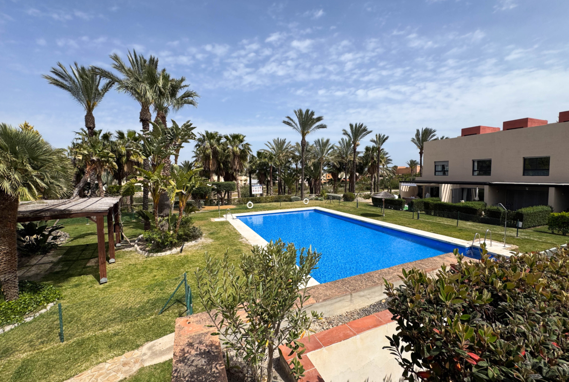 The second floor houses the two bedrooms and a bathroom with a walk-in shower, offering privacy and comfort. Furthermore, the 14-square-meter solarium at the top is the perfect spot for sunbathing or enjoying the starry nights. The community-maintained garden adds a touch of greenery and freshness to the surroundings.