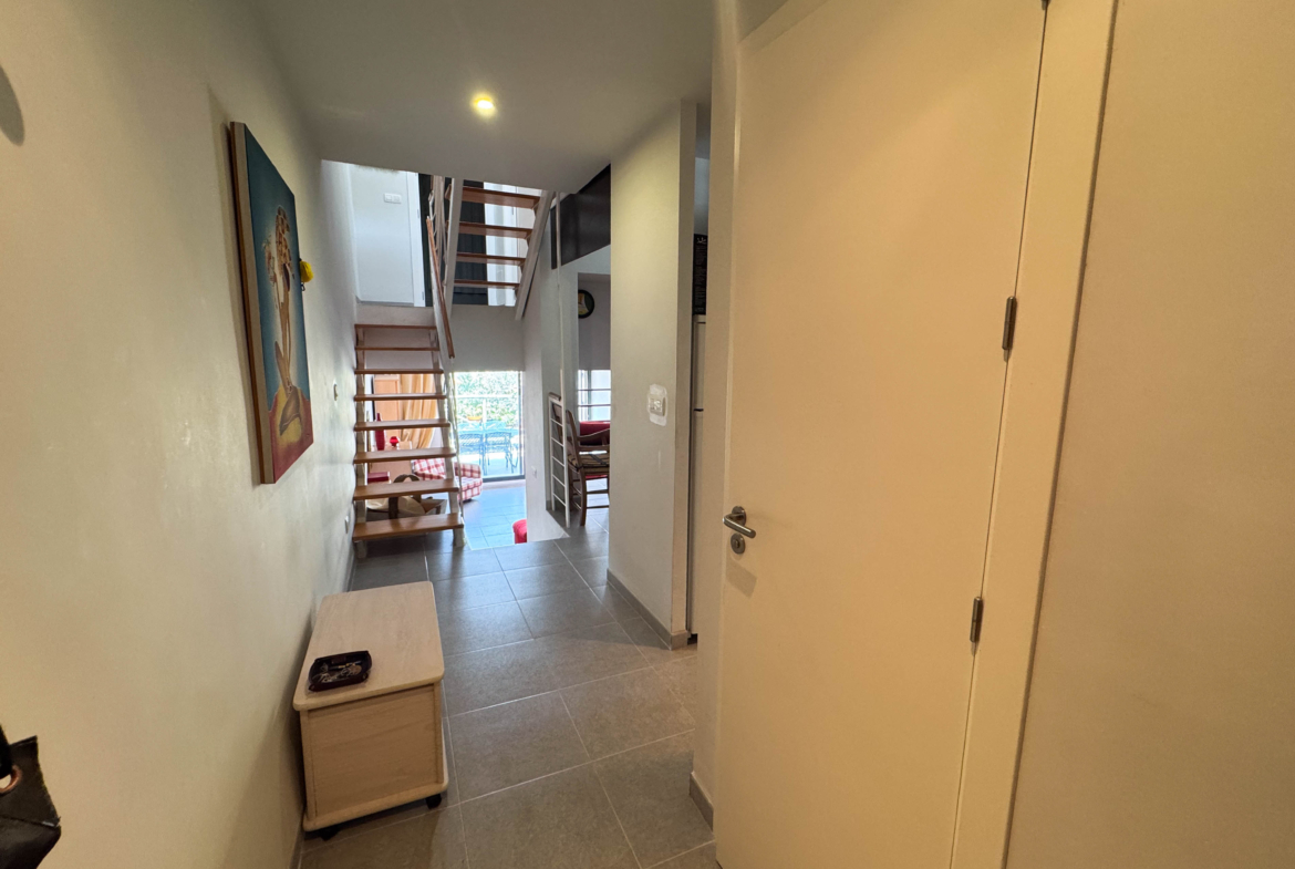 This duplex also includes fitted wardrobes, a storage room, and a parking space, all within a well-maintained building with an elevator. The west-facing orientation ensures you can enjoy natural light for much of the day. And don’t forget the communal swimming pool, perfect for cooling off on hot days. Don’t miss the opportunity to live in this wonderful home!