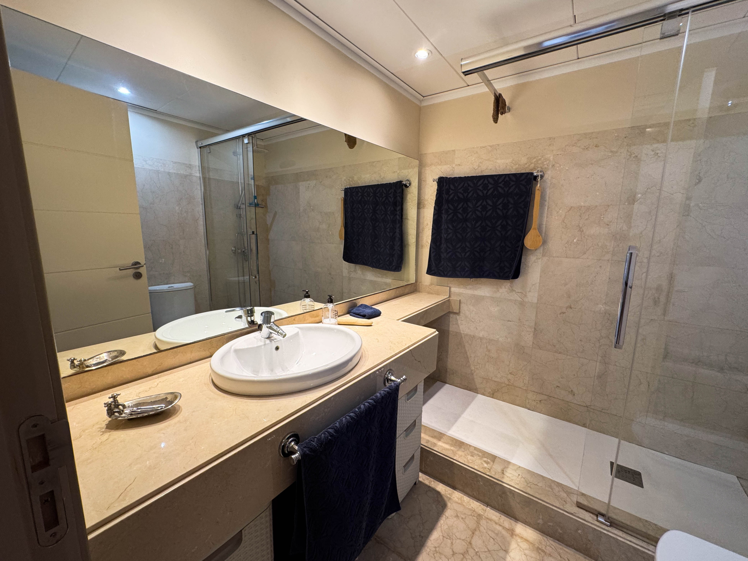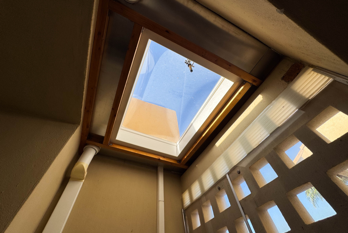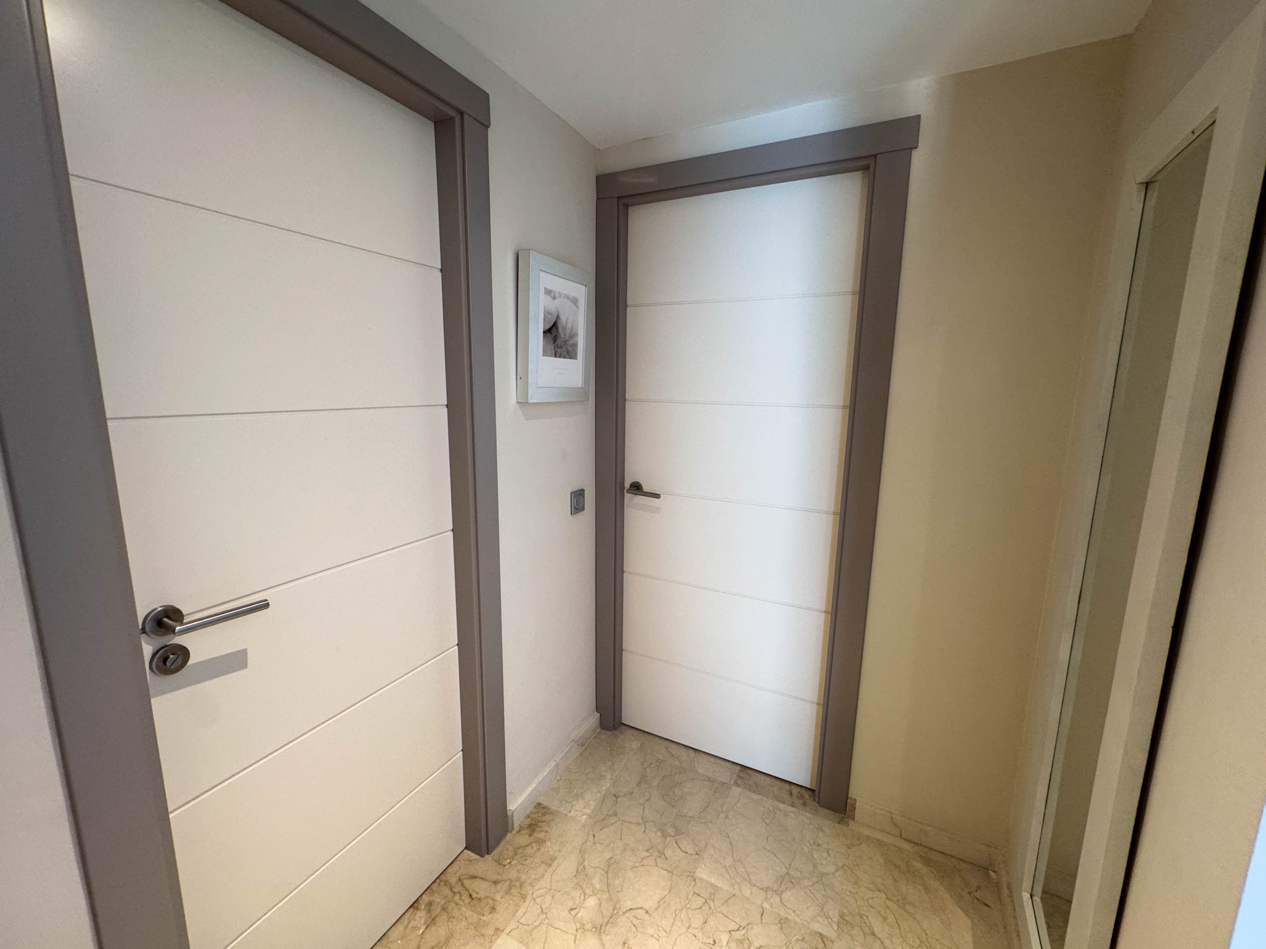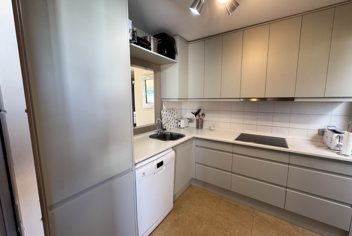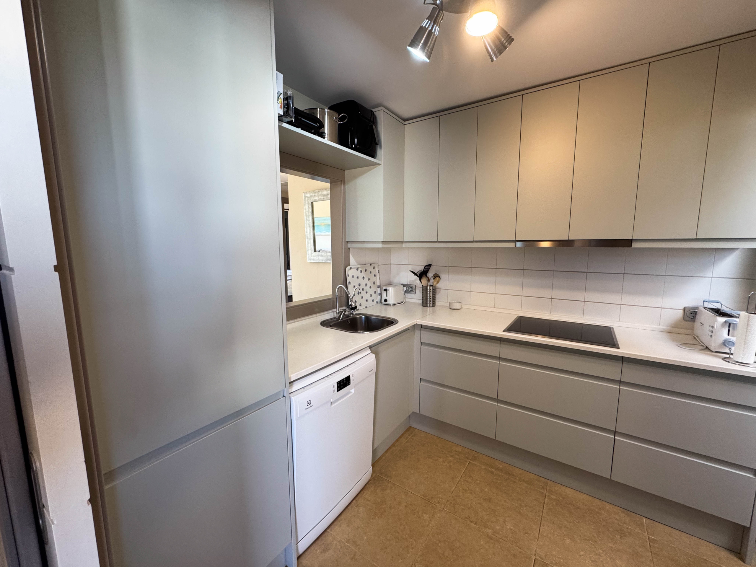 The kitchen, renovated just two years ago, is fully equipped and features a skylight in the laundry area that provides natural light, creating a welcoming and functional atmosphere. The jewel of this penthouse is its spectacular 34-square-meter terrace, perfect for enjoying the views and the Mediterranean climate.