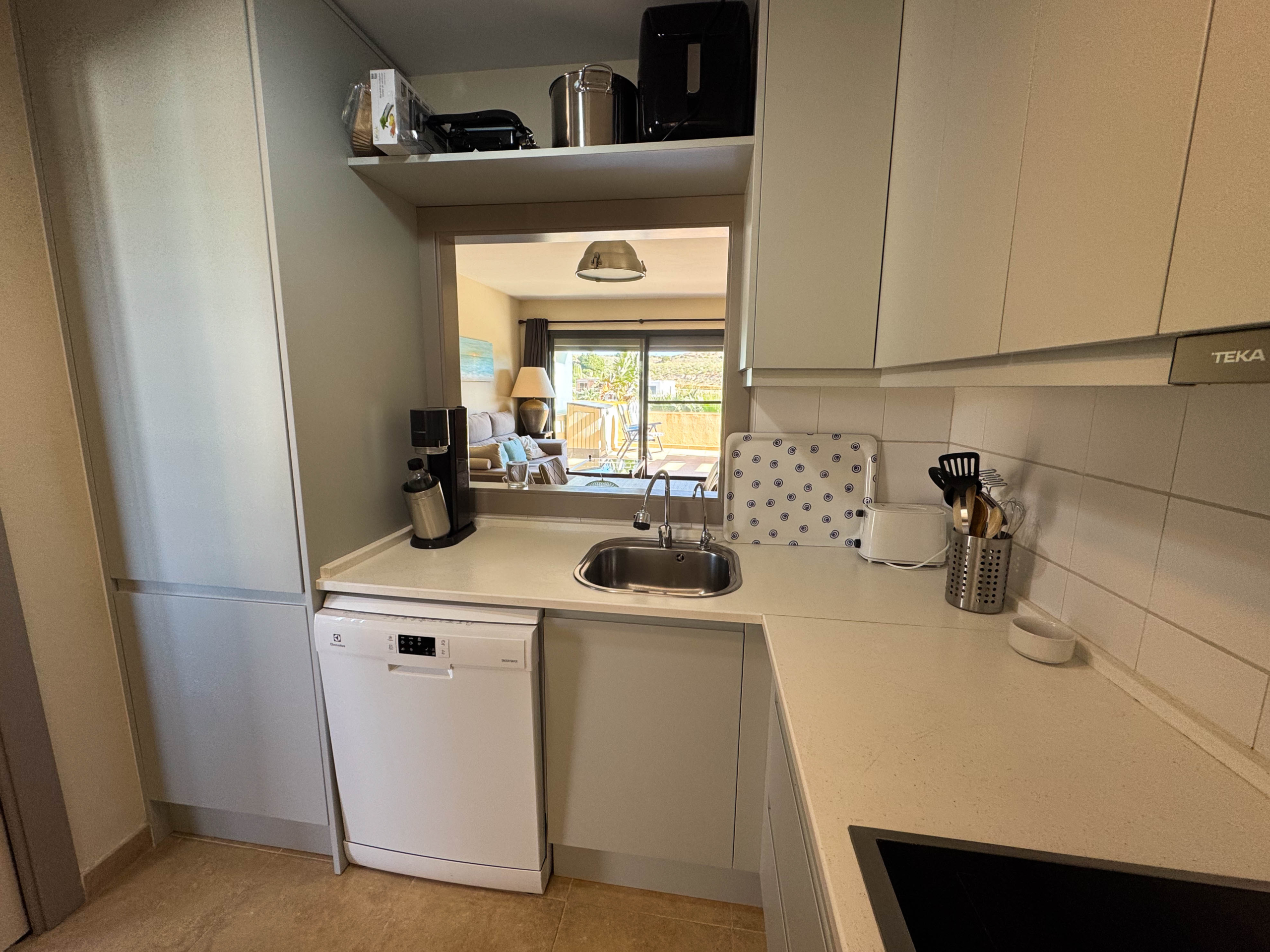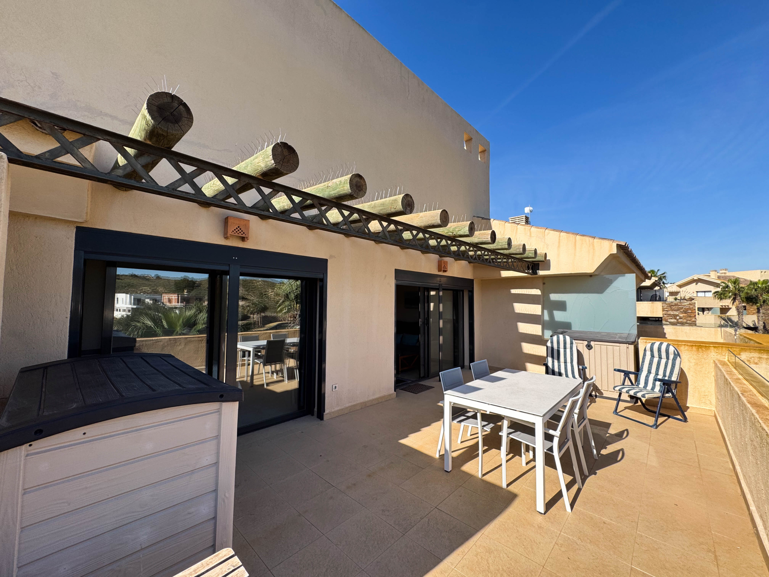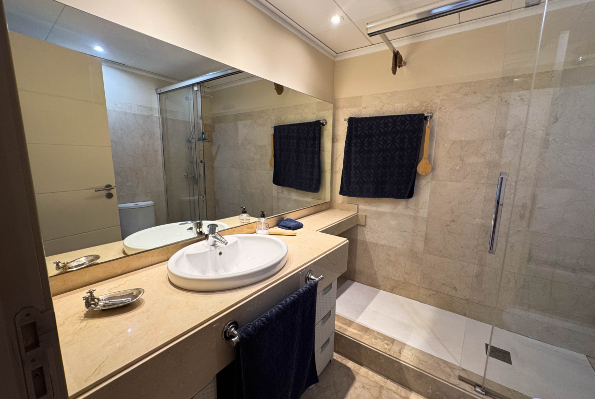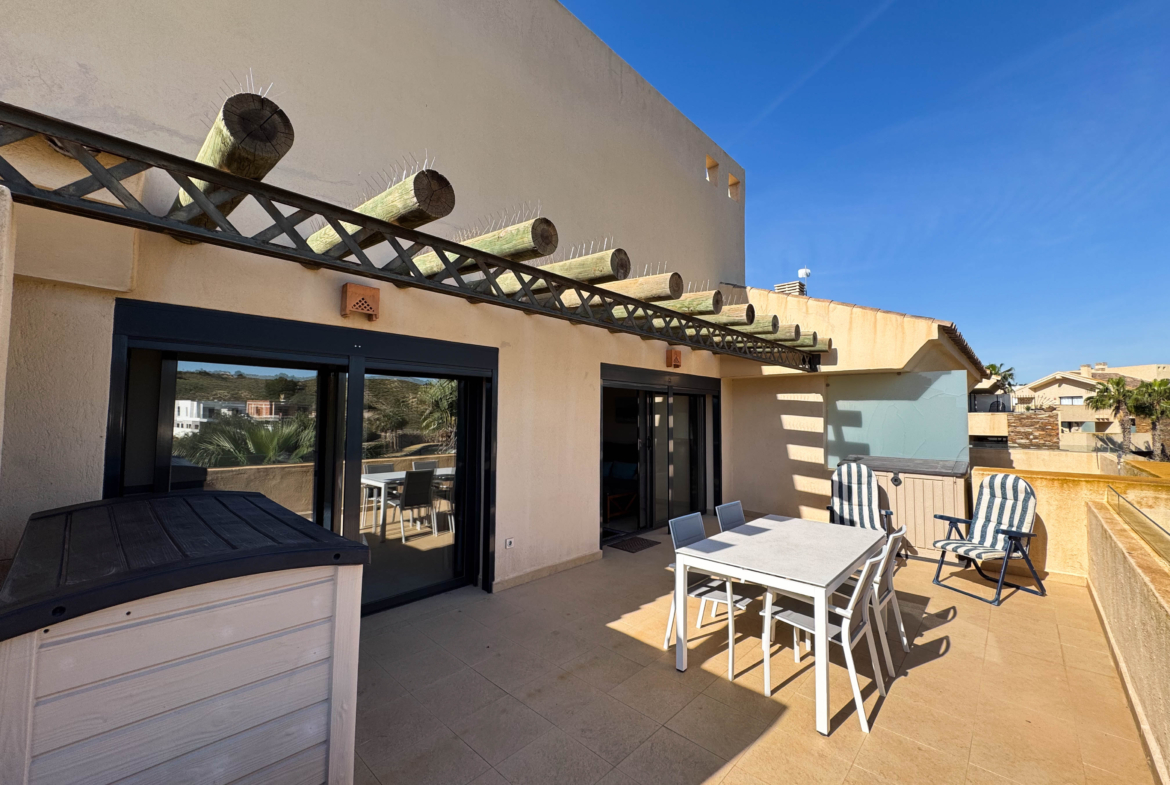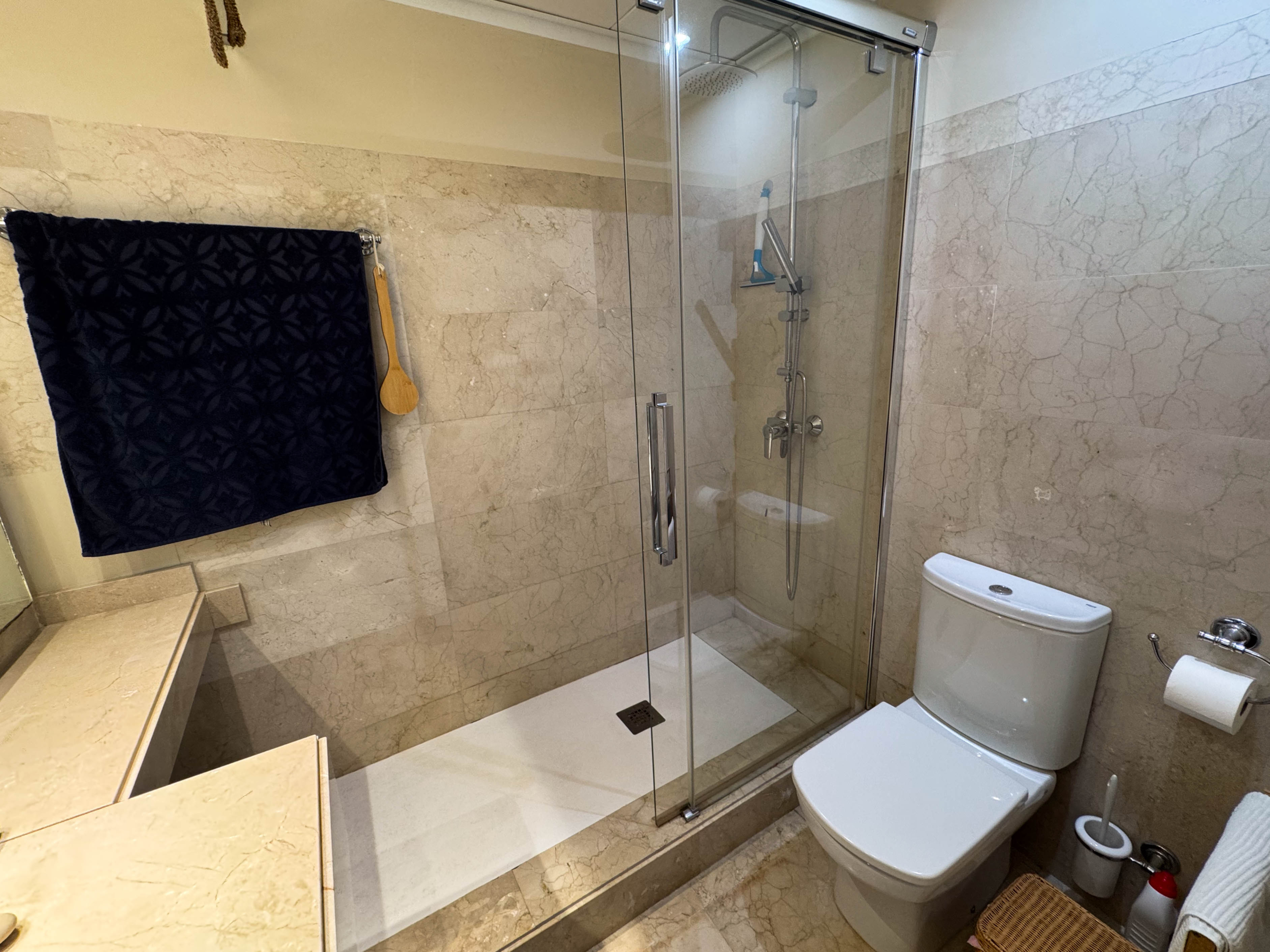 The kitchen, renovated just two years ago, is fully equipped and features a skylight in the laundry area that provides natural light, creating a welcoming and functional atmosphere. The jewel of this penthouse is its spectacular 34-square-meter terrace, perfect for enjoying the views and the Mediterranean climate.