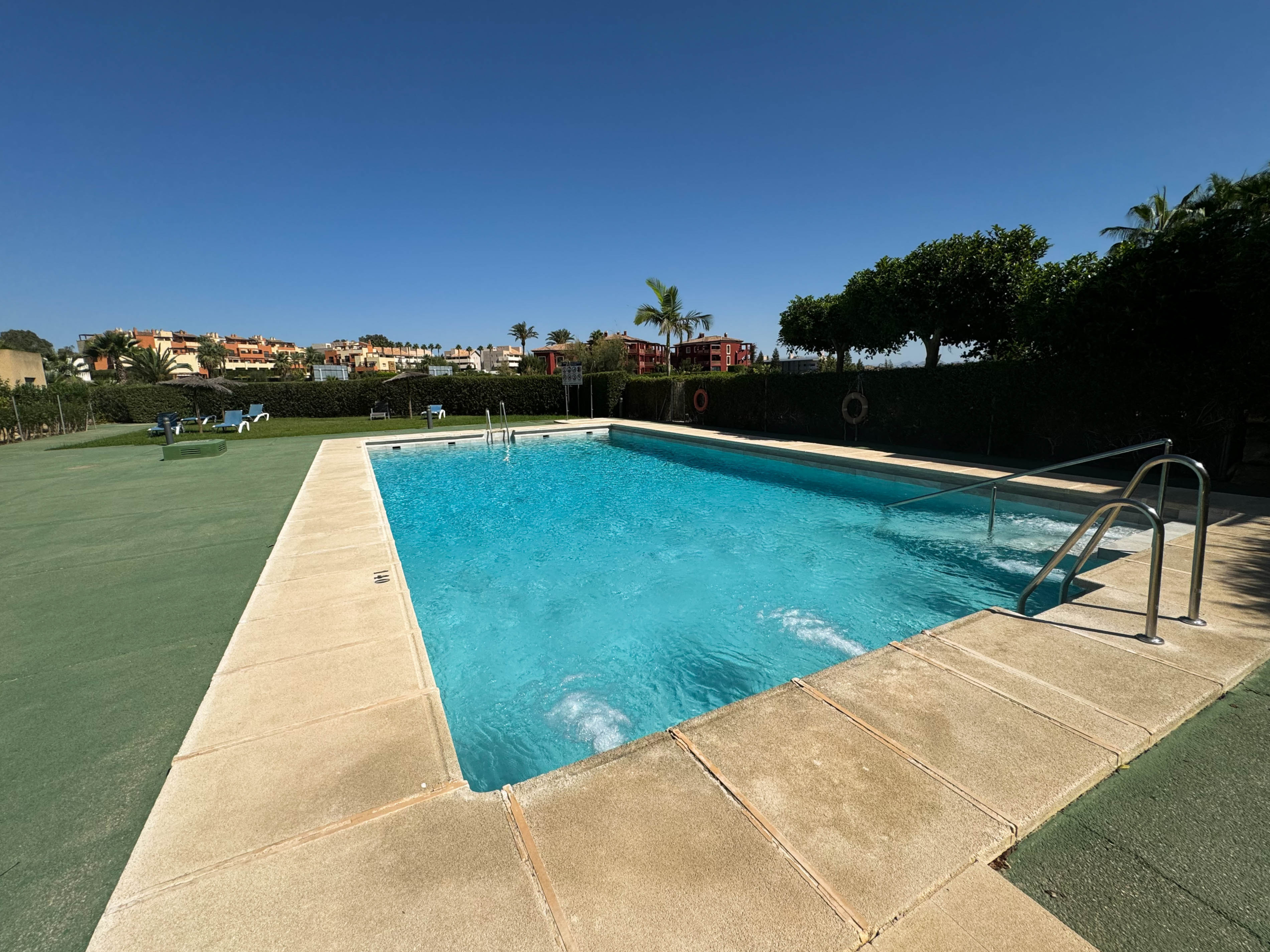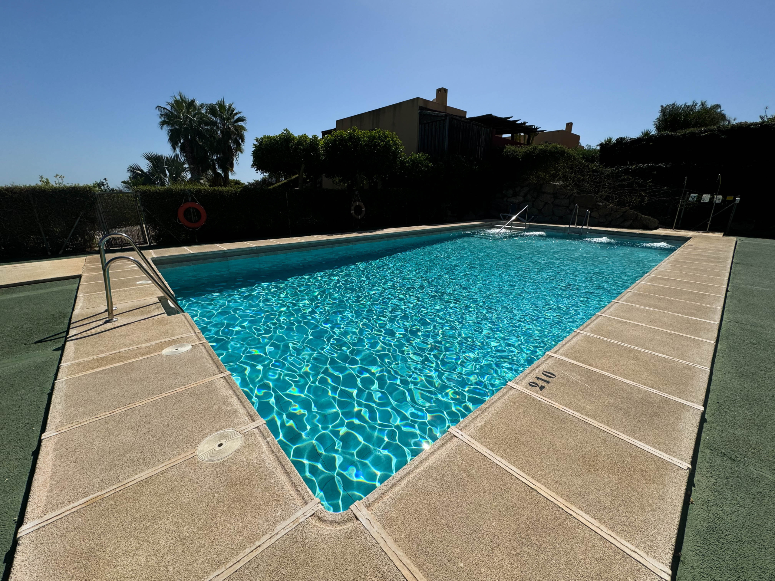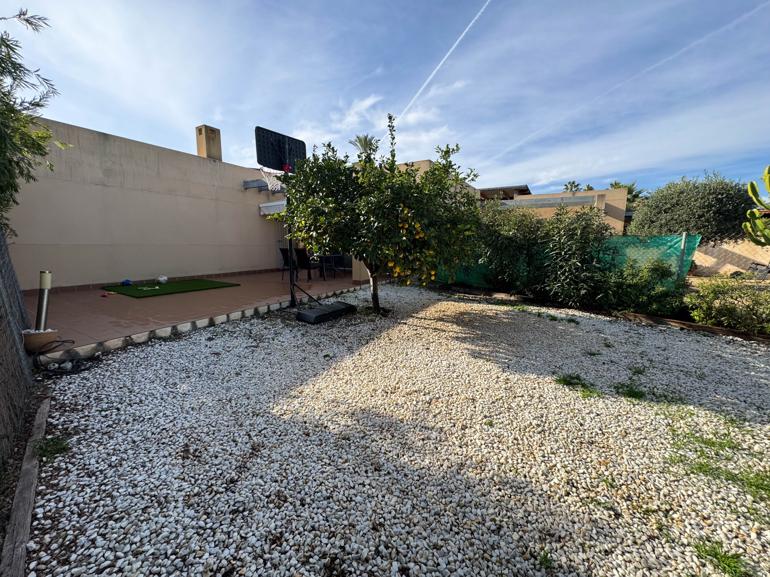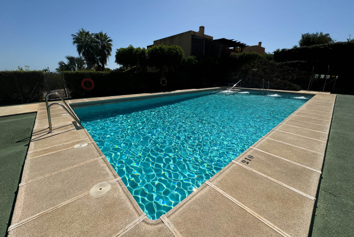 Discover this charming semi-detached bungalow in the exclusive Valle Del Este Golf development, ideal for those seeking a comfortable and elegant lifestyle. With 2 bedrooms and 2 bathrooms, this 79 m² home sits on a 228 m² plot, offering ample space both inside and out. Enjoy a living-dining room with an open-plan kitchen that opens onto a 73 m² back garden, where you can admire the stunning views of the golf course.