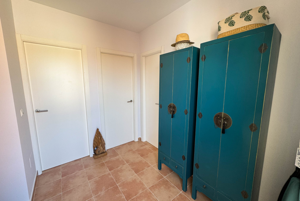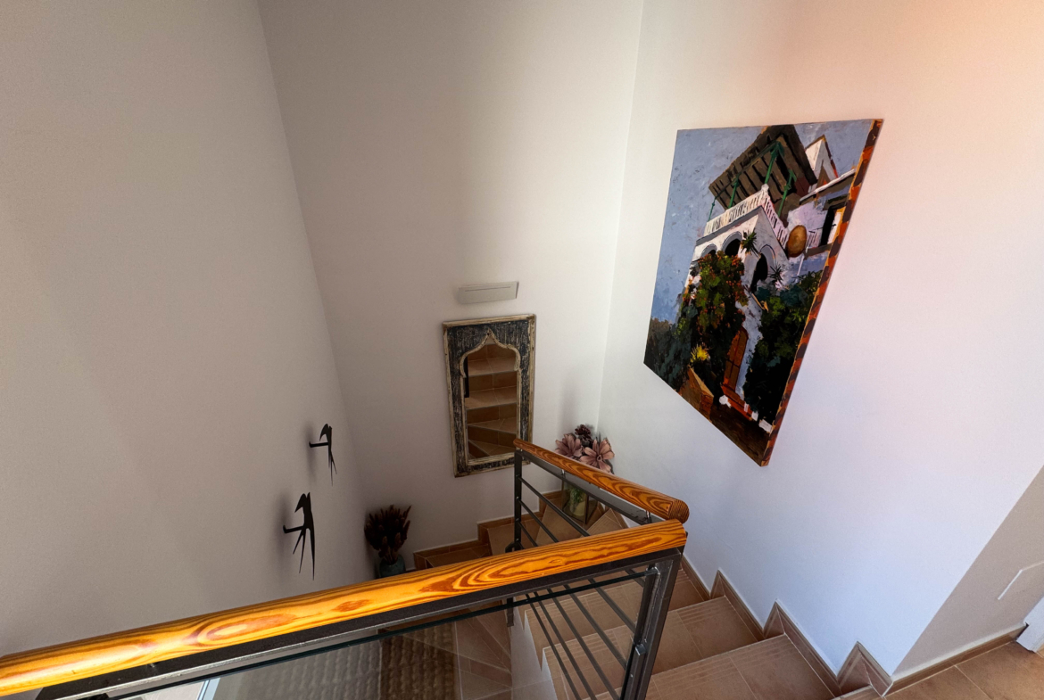 Going up to the second floor, two cozy bedrooms await you with built-in wardrobes and a private terrace that connects to both, providing an intimate space to relax while contemplating the surroundings. In addition, it has a rear terrace perfect for enjoying summer afternoons. The house, built in 2006, is furnished and decorated down to the last detail, ready to move into.