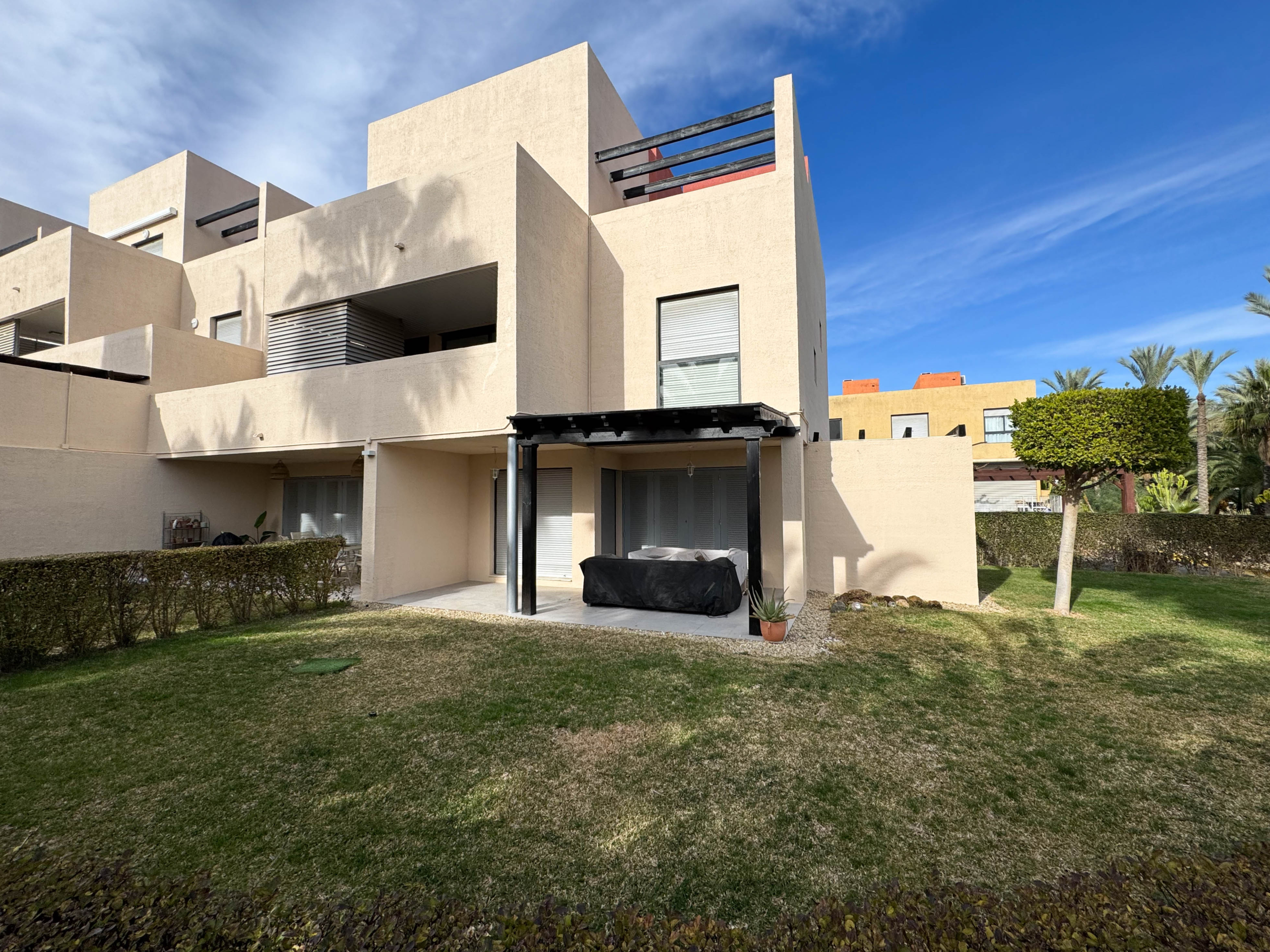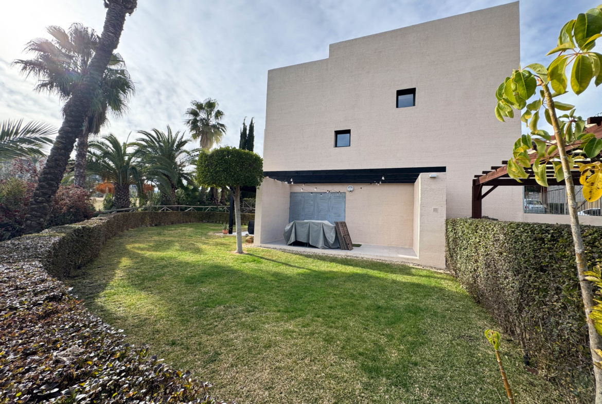 On the first floor, we find two bedrooms and a bathroom. On the top floor, we find a solarium with beautiful views of the golf course and the Hotel Valle del Este. The home includes two parking spaces, one of them measuring 21 square meters, and a large 14-square-meter storage room.