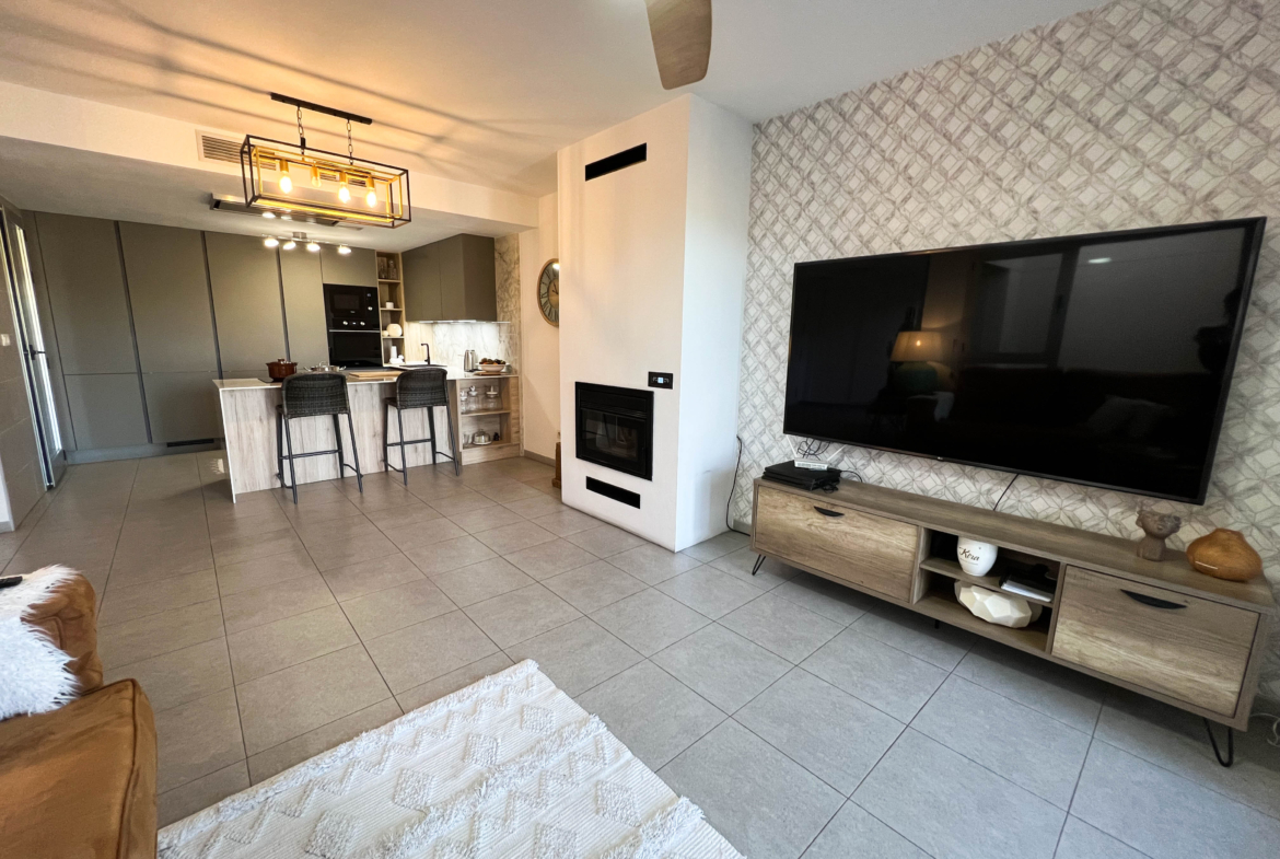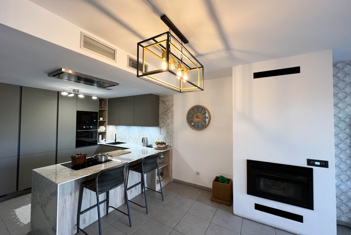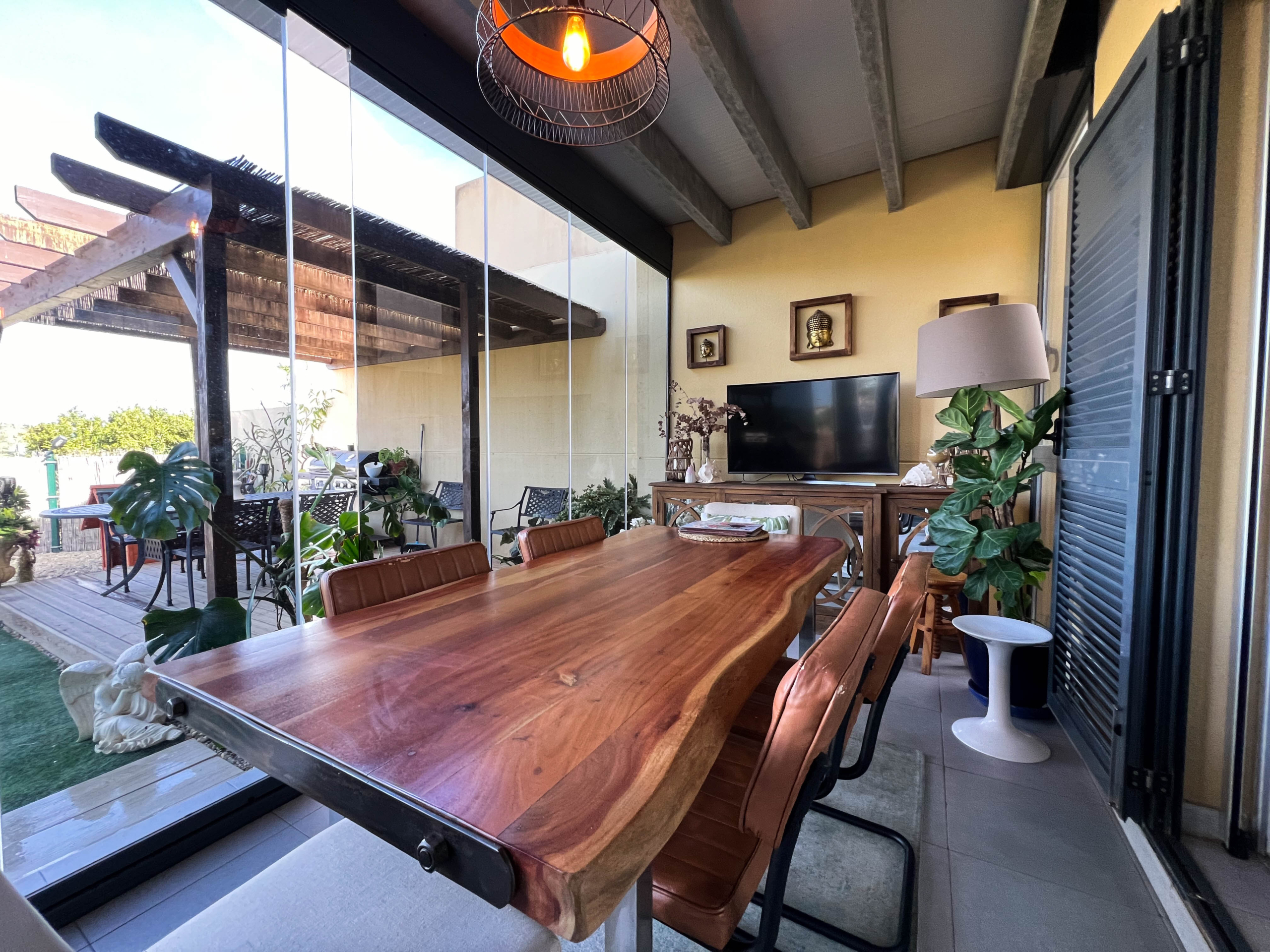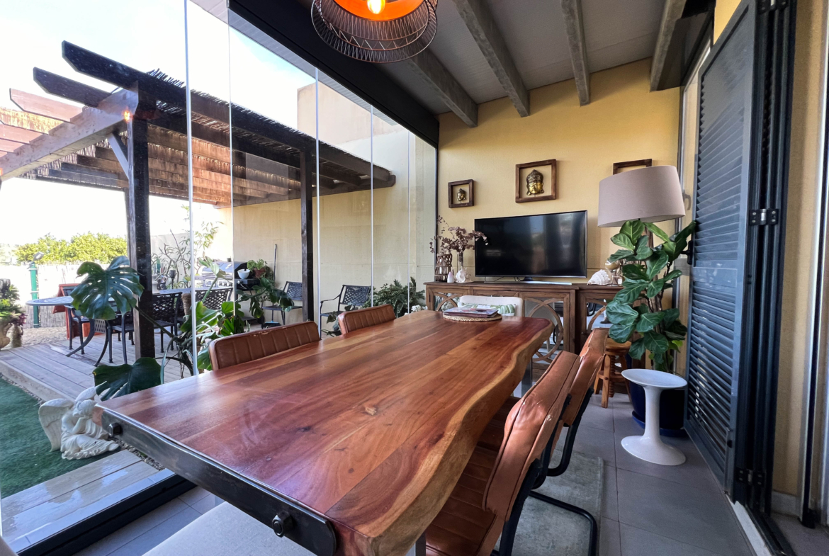 Incredible opportunity! This large 3-storey villa is available for sale. With 5 bedrooms, it has been completely renovated on all floors, offering a modern and cozy space. The basement has been converted into an equipped bar, perfect for meetings and celebrations. In addition, it has a recreation room with a stage and gym area, ideal for enjoying moments of fun and exercise. The English patio, with natural light, offers a fresh and beautiful outdoor space, while one room has been converted into a storage room for greater comfort. It also has a bathroom in the basement and a renovated open kitchen, with an American refrigerator and DEKTON countertop. The living room, with a fireplace and ample space, is perfect for relaxing and enjoying family moments. In addition, it has a dining area on a glazed terrace, with access to the garden and porch area, where you can enjoy barbecues and beautiful sunsets in the Eastern Valley. On the upper floor, you will find a large master bedroom and a large bathroom with a bathtub. There is also a second bedroom with a solarium terrace, from where you can enjoy incredible views of the golf course. The property is sold furnished and has hot and cold air conditioning on all floors. Don’t miss the opportunity to visit this spacious property!