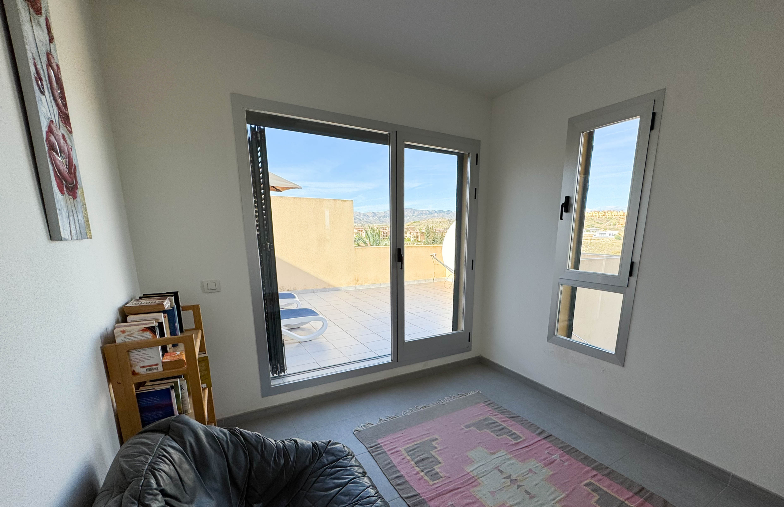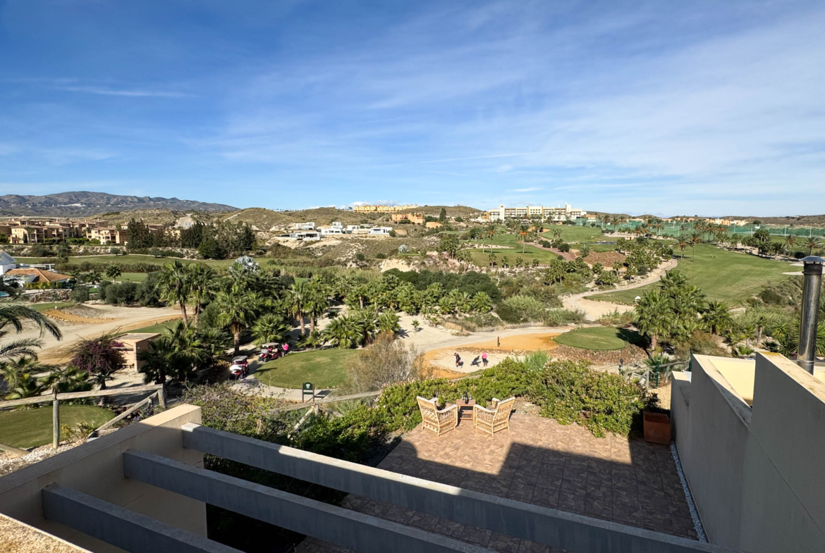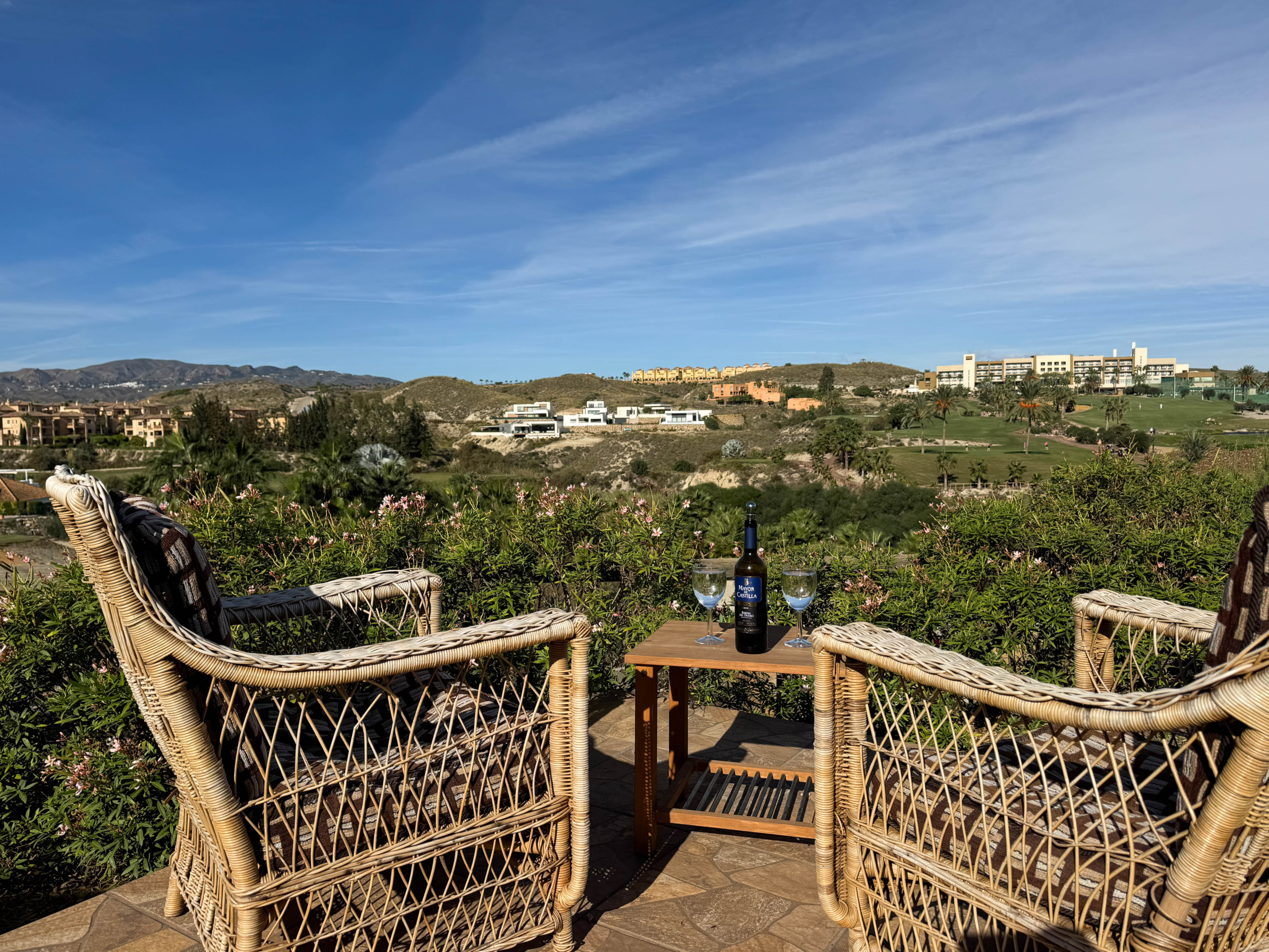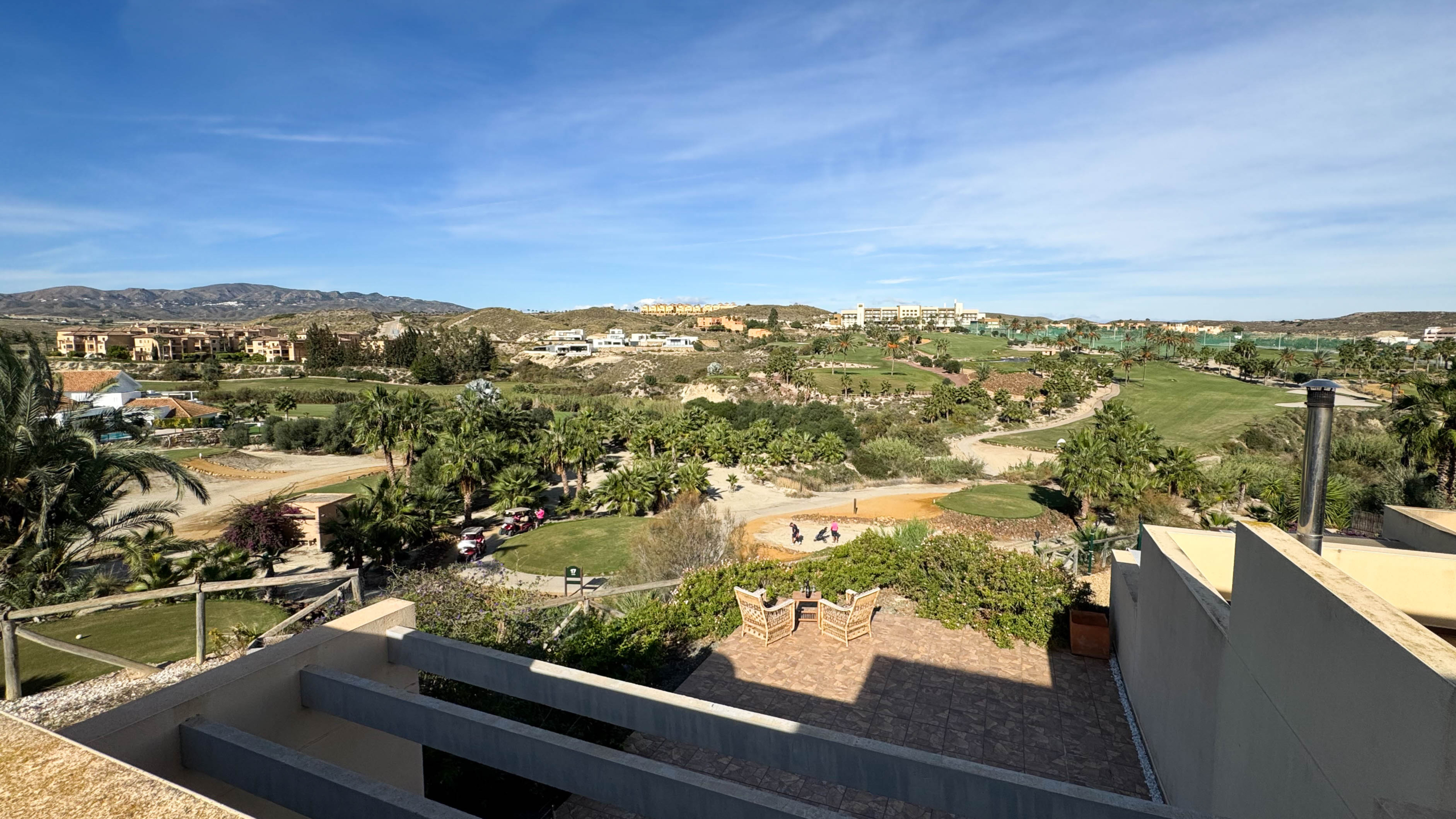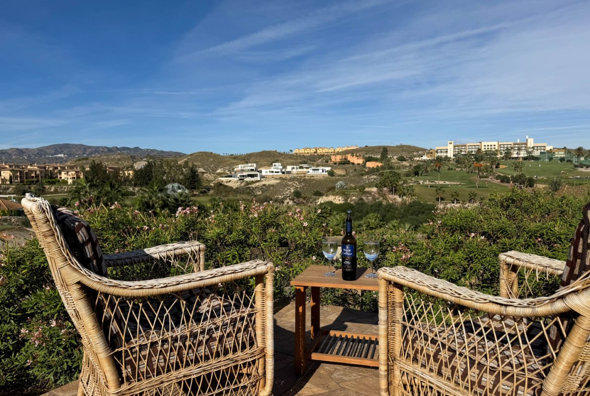 Upstairs is the large master suite with bedroom, en suite bathroom, private sitting room and large sun terrace with panoramic mountain, golf and countryside views. All bedrooms have built in wardrobes and storage.