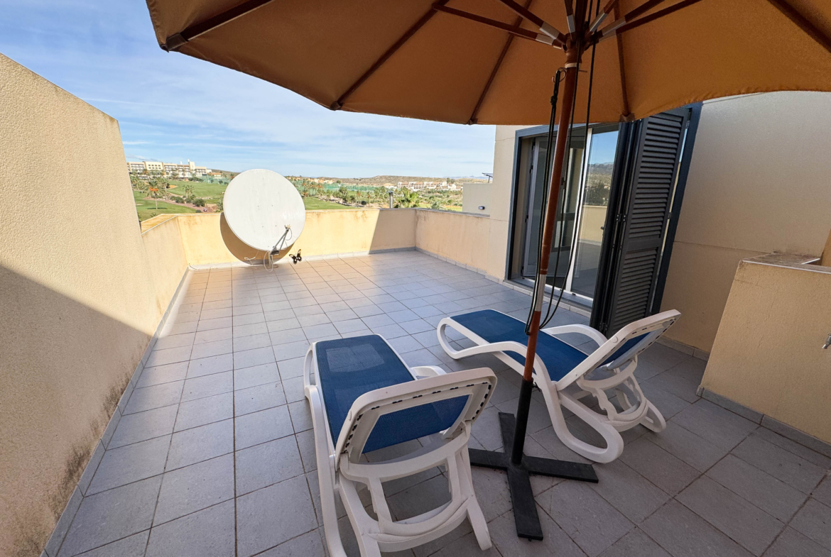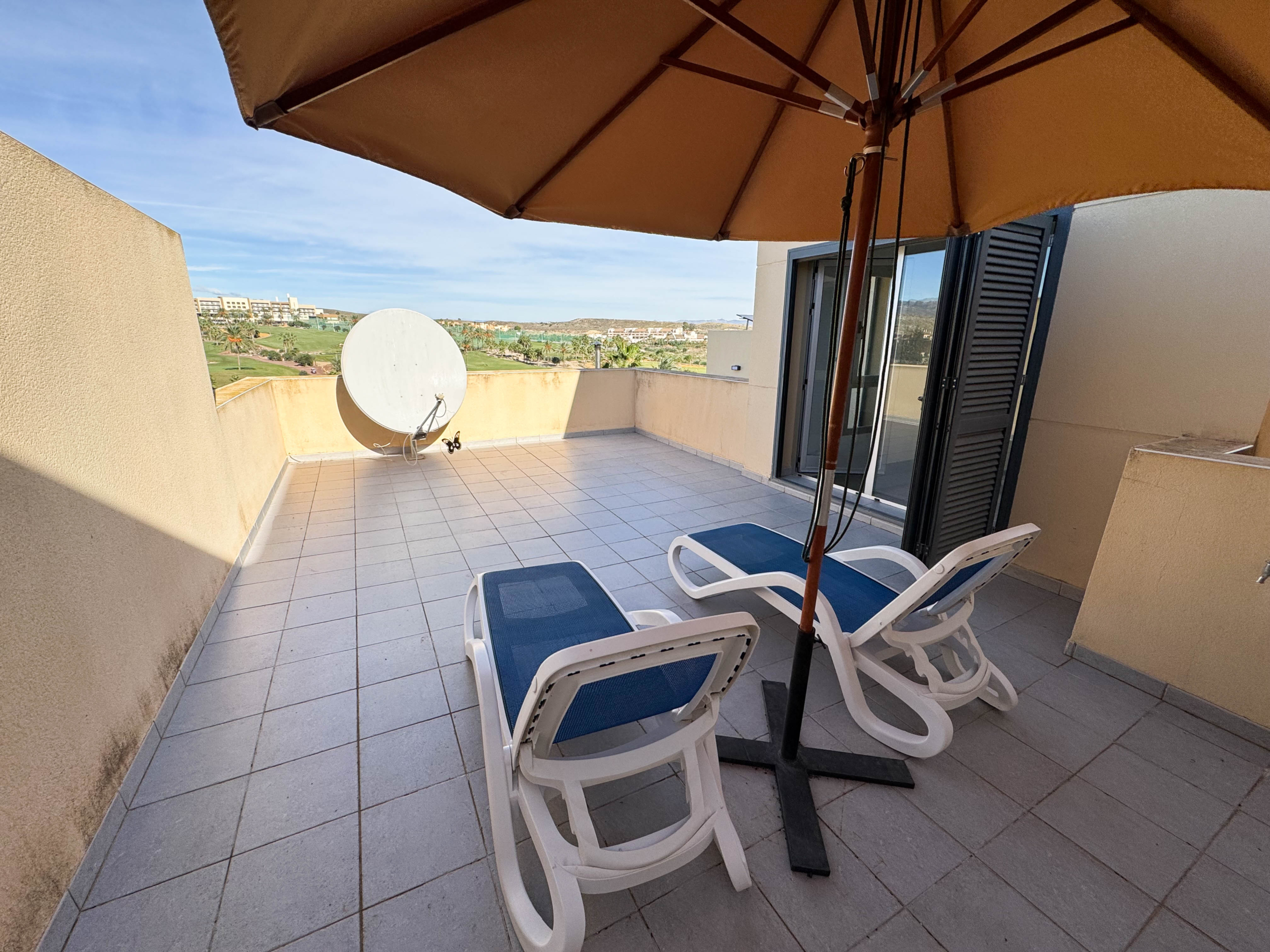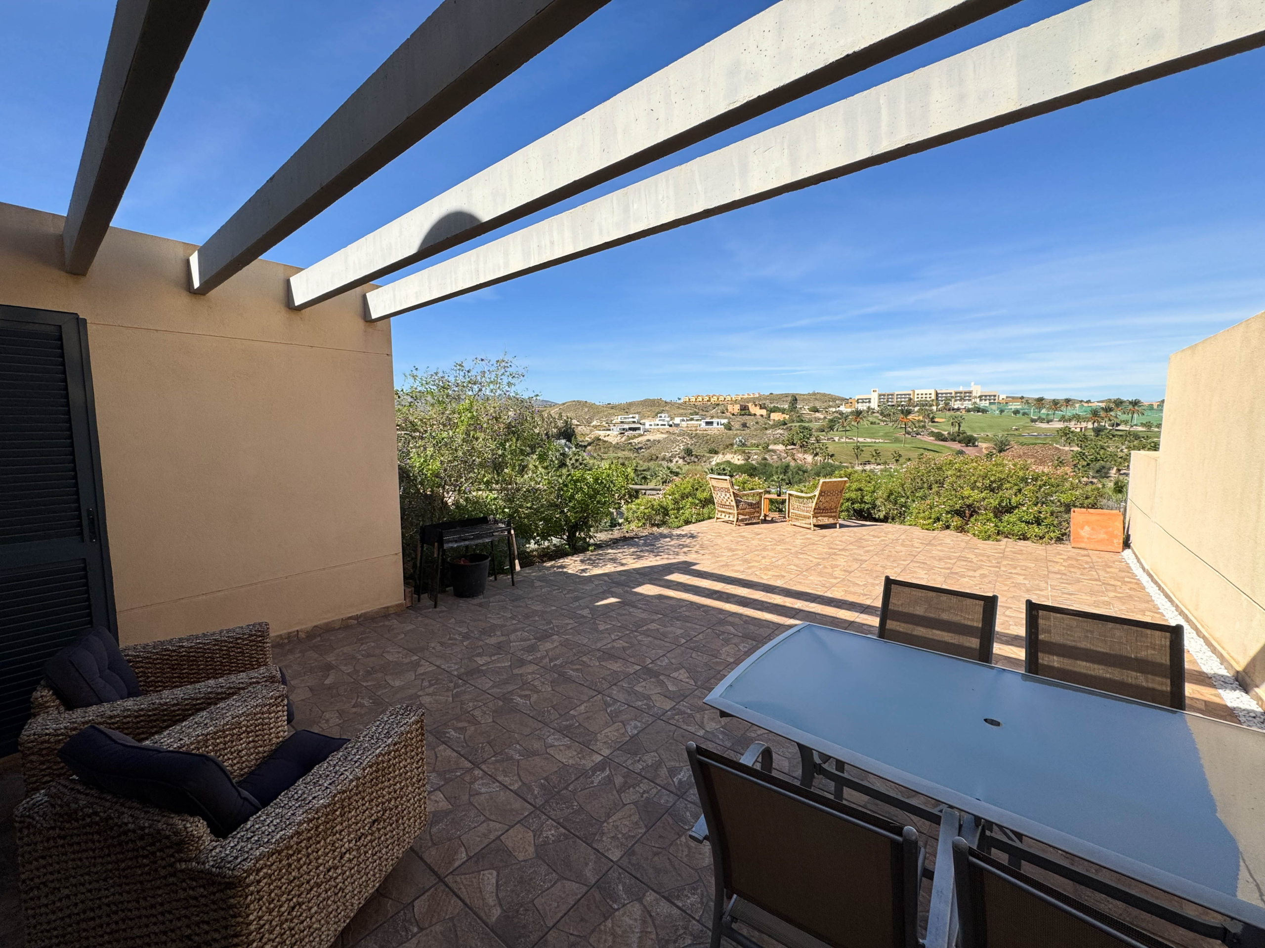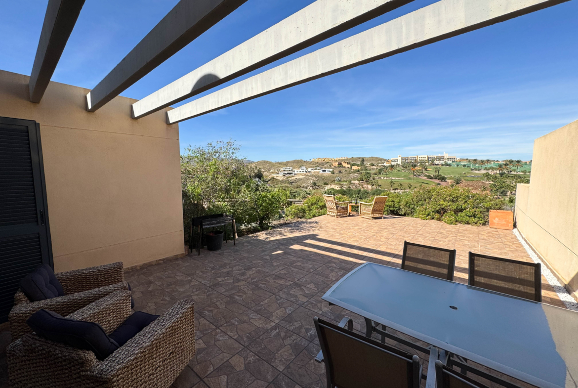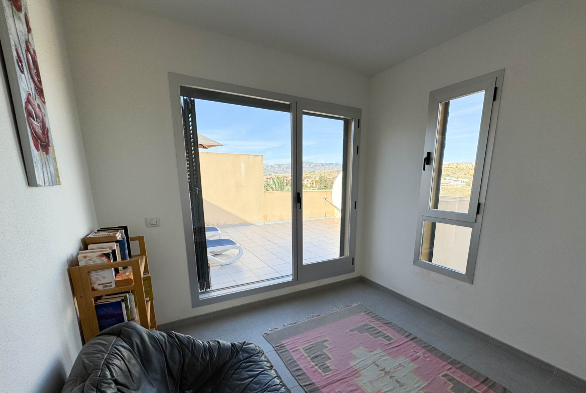 Upstairs is the large master suite with bedroom, en suite bathroom, private sitting room and large sun terrace with panoramic mountain, golf and countryside views. All bedrooms have built in wardrobes and storage.