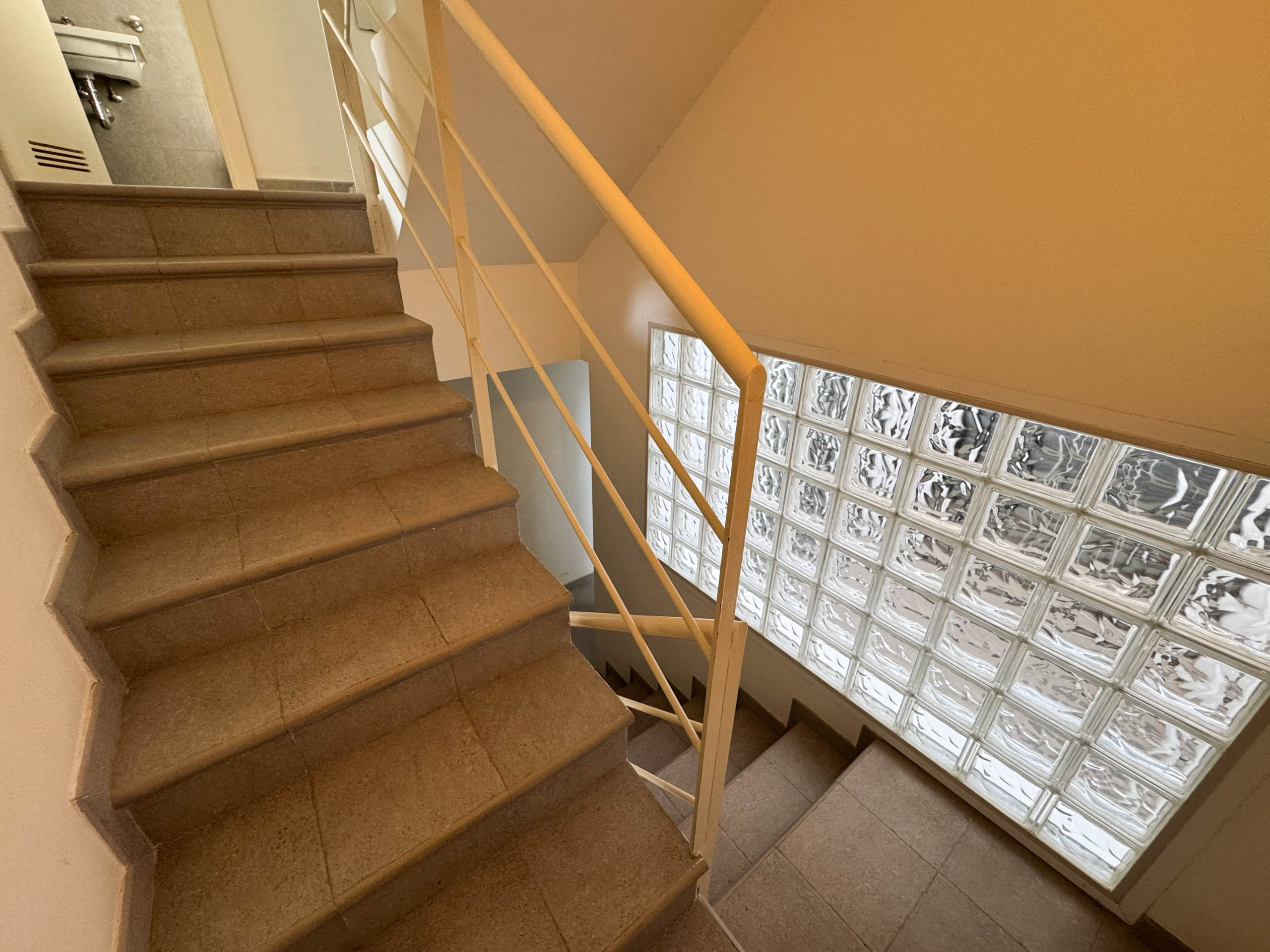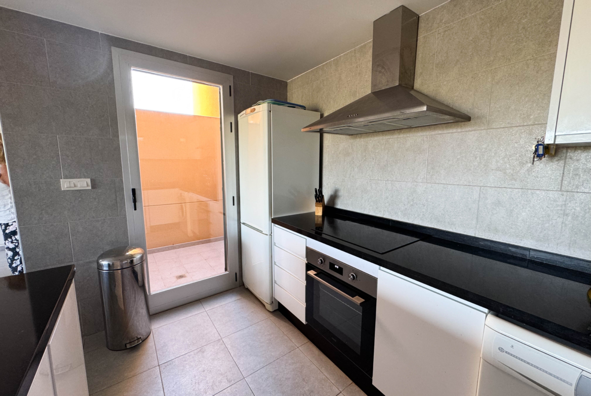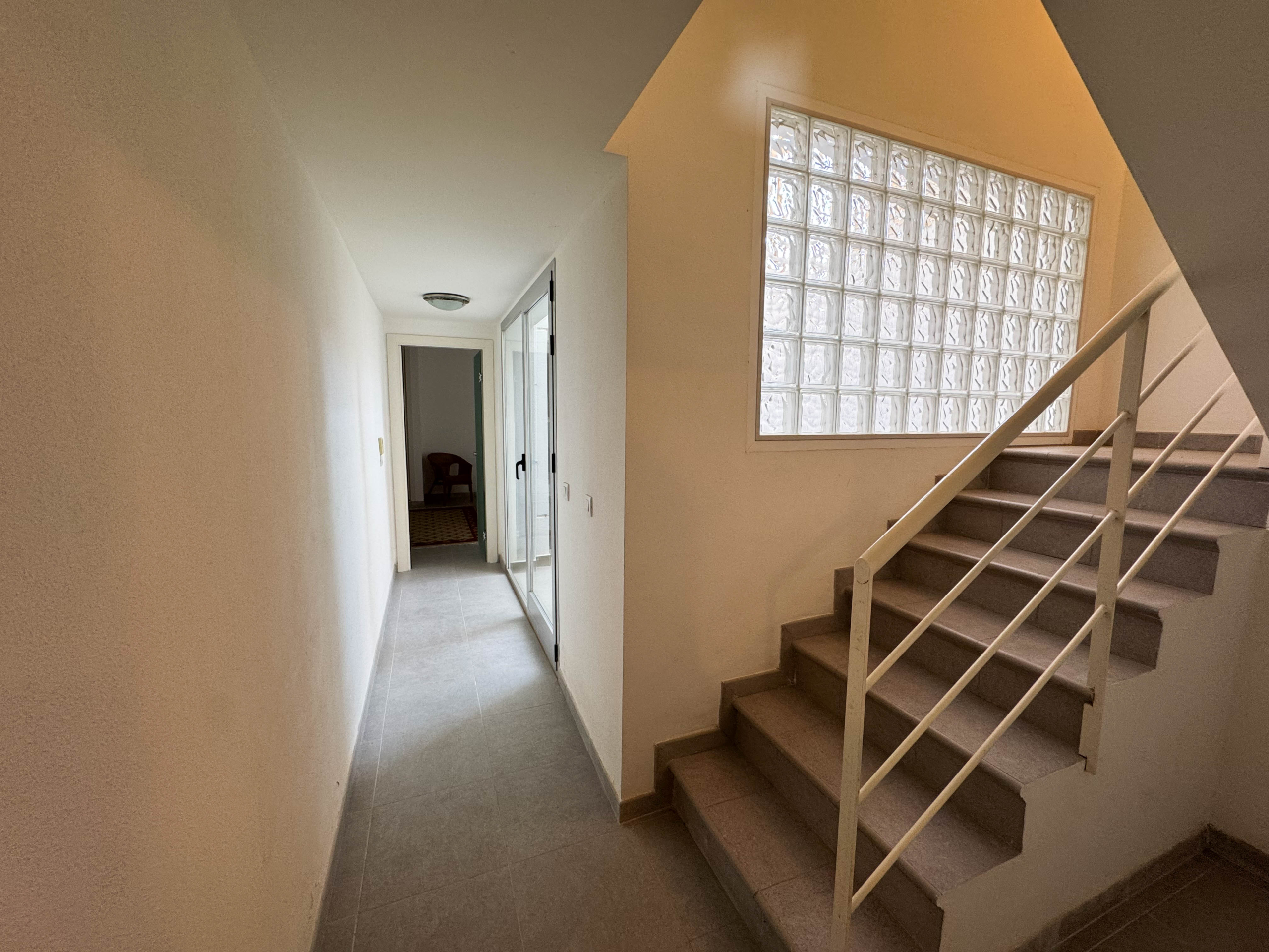 Entering on the ground floor is the main living area, with modern kitchen, opening onto a large terrace. There is also a bedroom, bathroom and office/study